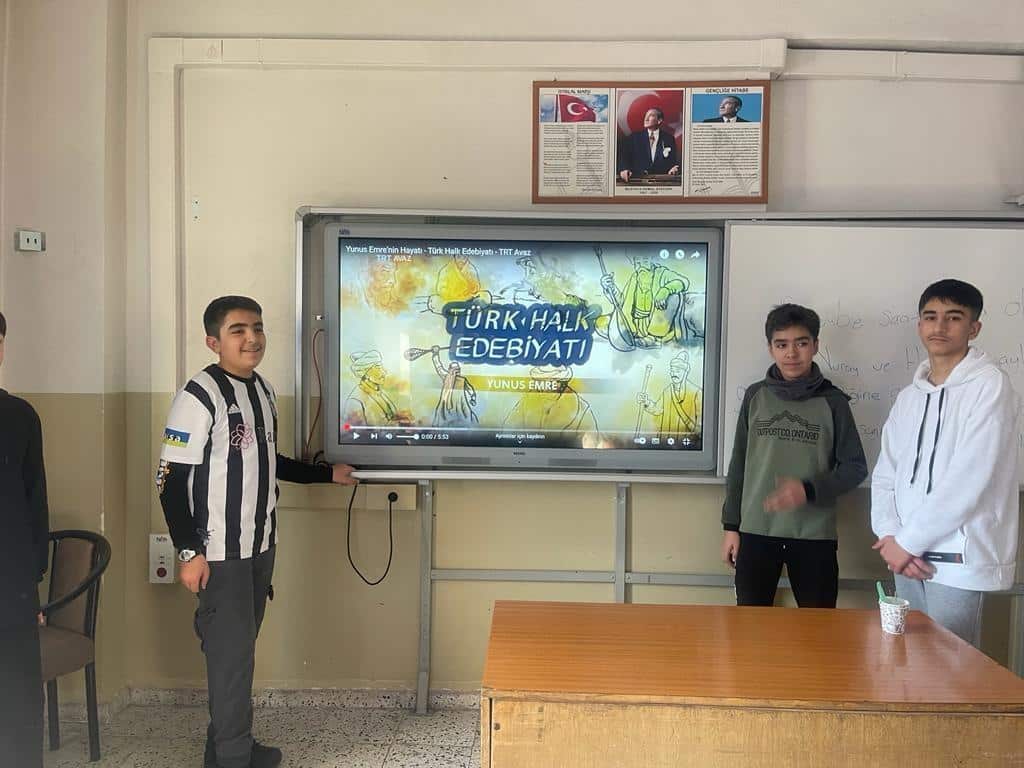 Dilimizin Zenginlikleri projesi kapsamında yapılan çalışmalarla okulumuz öğrencileri sınıflarında "Yunus Emre" tanıtım sunumu yaptılar.